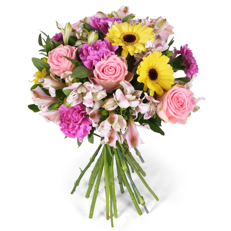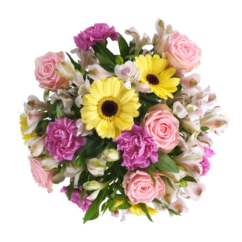 Róże, gerbery, goździki i alstromerie zostały połączone w sposób, który tworzy bukiet pełen harmonii i spokoju. Ta wyjątkowa kompozycja kwiatowa stanowi doskonały przykład tego, jak subtelność może być równie wyrazista jak najbardziej ostentacyjne bukiety, a delikatność może komunikować głębokie uczucia równie skutecznie, jeśli nie lepiej, niż najgłośniejsze gesty. Dodaj liścik i pokaż, co czujesz!