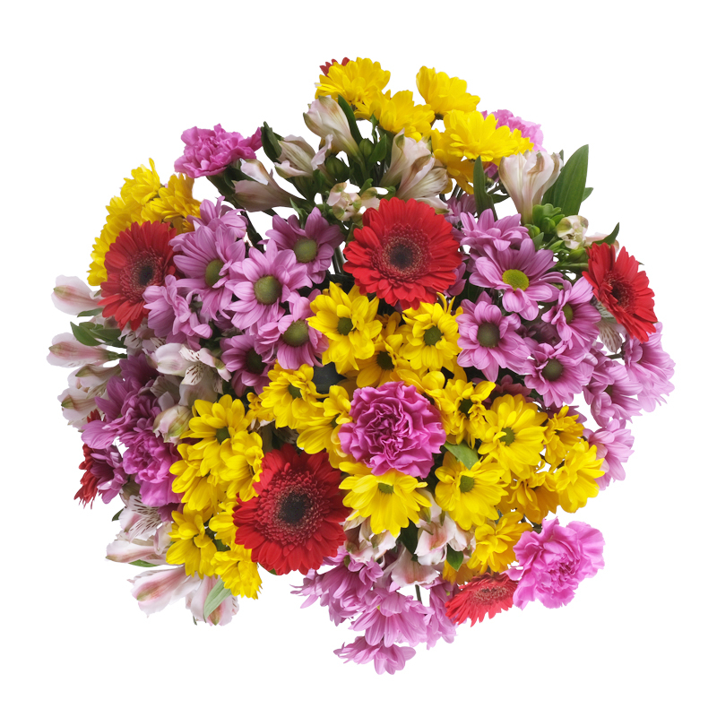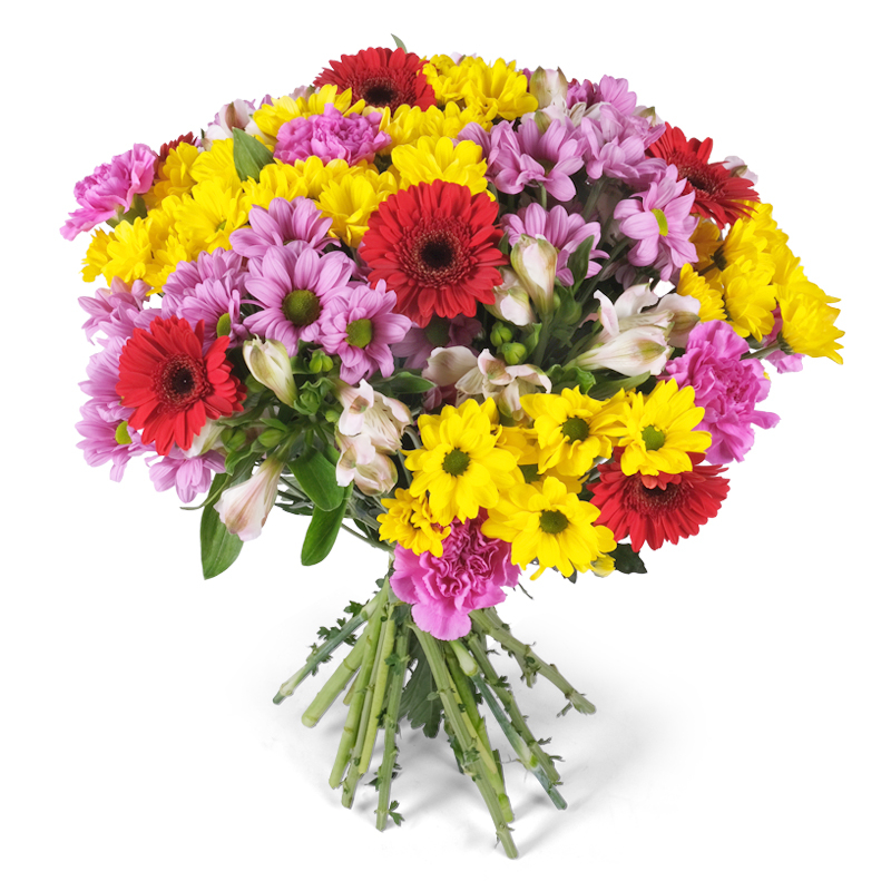 Bukiet jak tęcza po burzy - kolorowy, radosny i pełen nadziei. Kwiaty układają się w efektowną całość, która od razu poprawia nastrój. Różnorodność gerber, alstromerii, gerber i santini to nie tylko piękny widok, ale też gwarancja uśmiechu. Podaruj bukiet komuś, kto potrzebuje odrobiny słońca w życiu.
