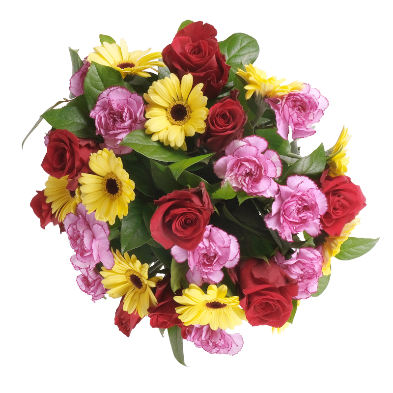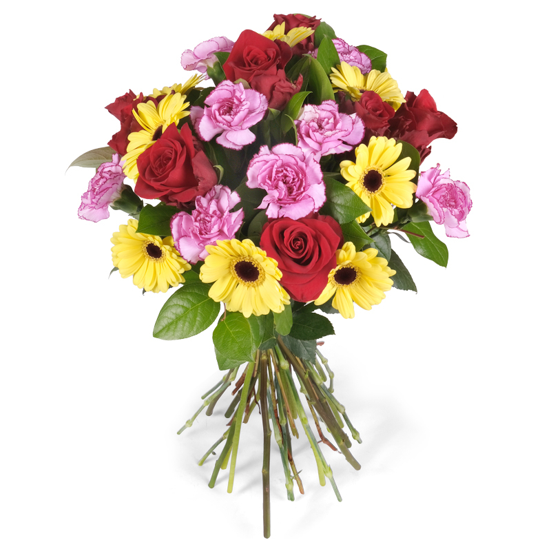Róże, gerbery i goździki – trzy kwiaty, które razem tworzą niezwykły duet elegancji i radości. Ten bukiet zachwyca swoją prostotą i lekkością. To idealny wybór na urodziny, imieniny lub po prostu z serca. Wprowadza do pomieszczenia dobrą atmosferę. Zawsze wygląda wyjątkowo!